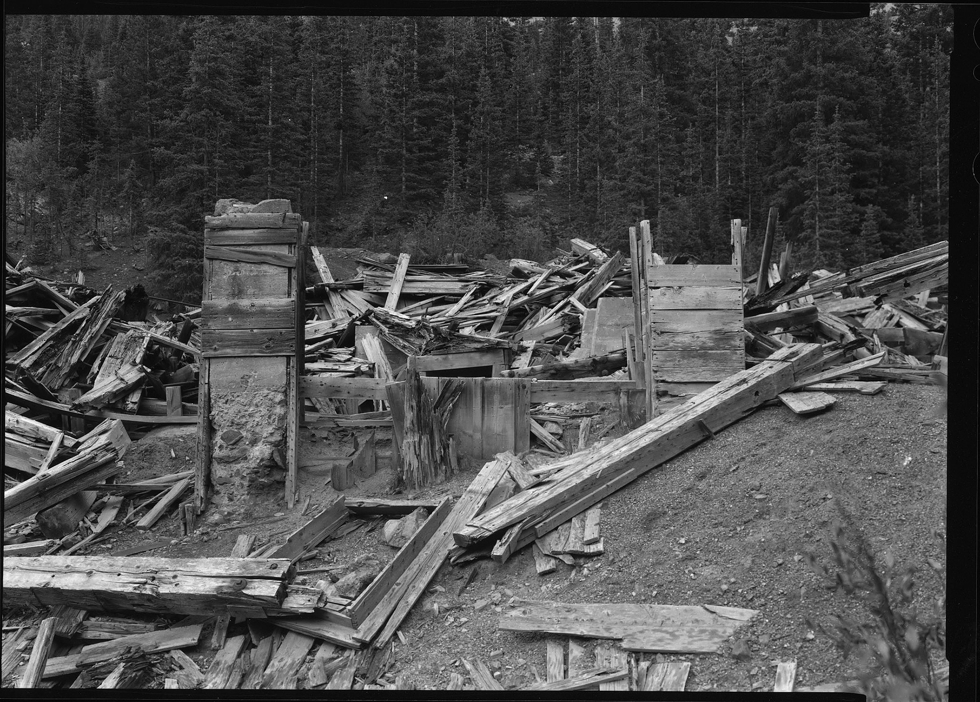 This group of buildings near the town of Montezuma in Summit County, Colorado is home to the first silver mill in the state. The site includes a large milling building, which was added onto over several decades, as well as a unique chimney structure halfway up a hill from the main mill; and several mine-related outbuildings. Smaller artifacts such as shaker tables (seen in the detail below) abound. The main mill complex was restored to wetland due to the severely degraded condition of the structures, and to help filter acid mine drainage from the site.